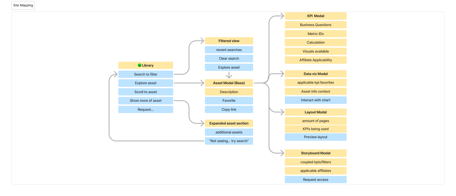 Created a shared visualization that allowed stakeholders and developers to understand how features connected across the platform.